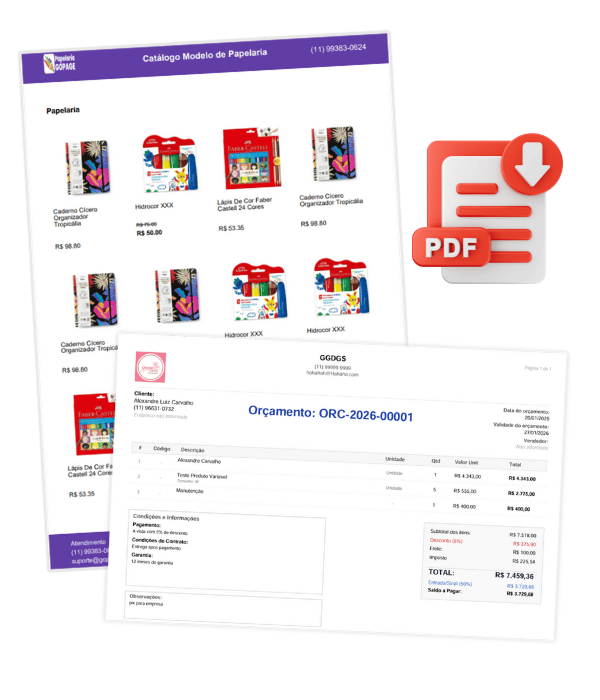 Geração de Catálogos e Orçamentos em PDF ilimitados de forma rápida e profissional
